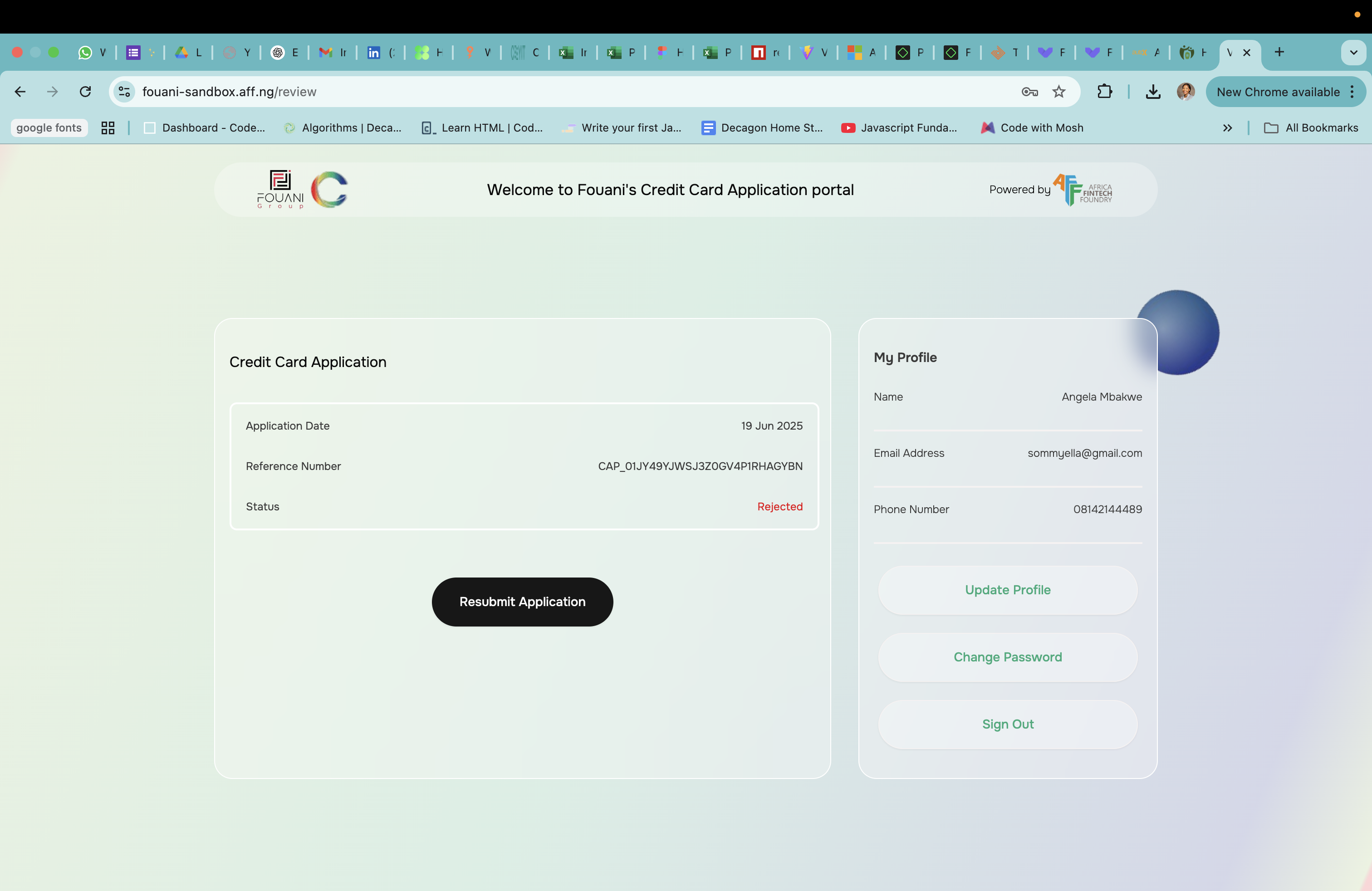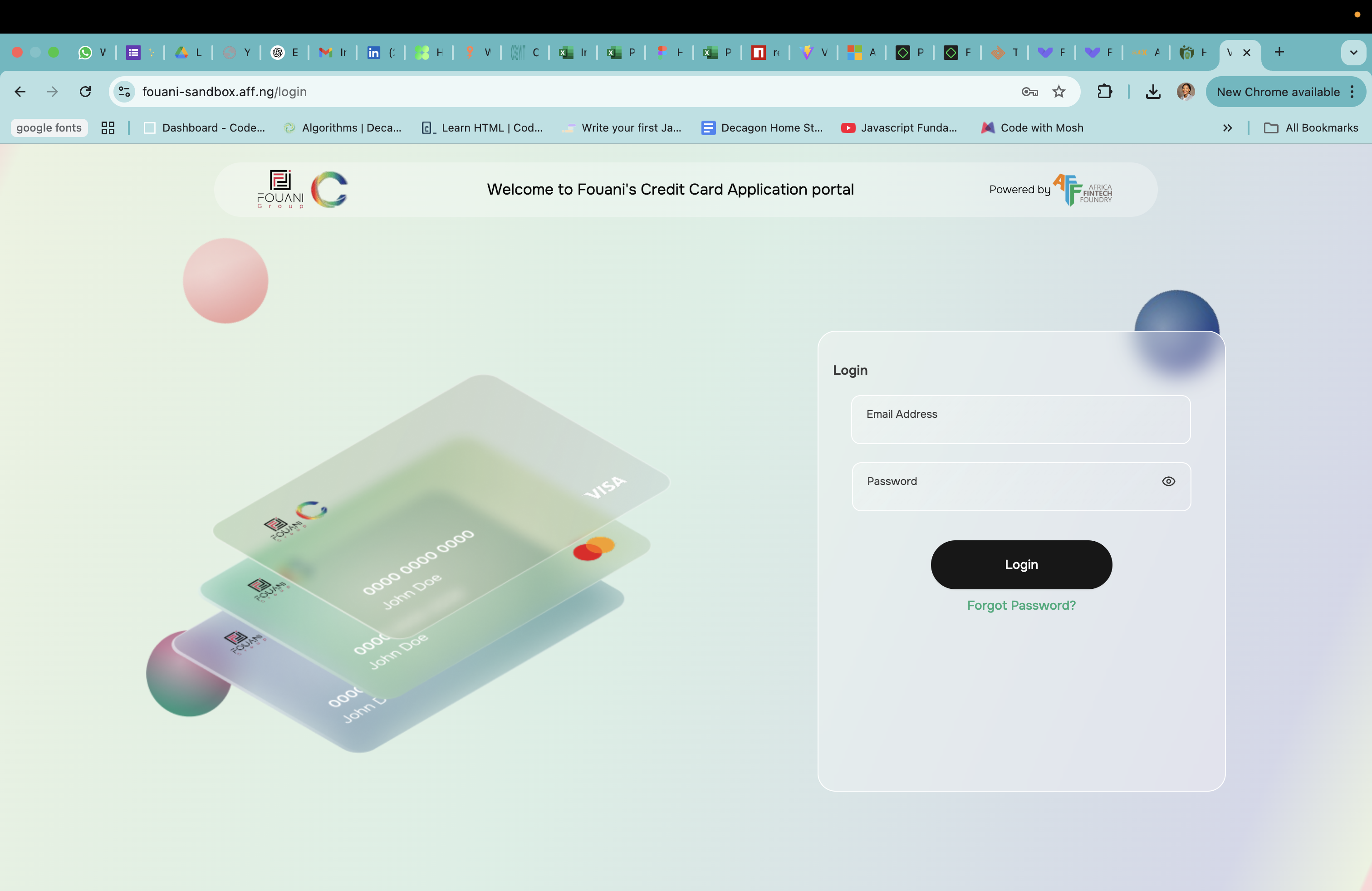A web-based platform developed for managing credit card applications within the Fouani ecosystem. The system allows customers to apply for store-specific credit cards, while providing admin teams with tools for reviewing, approving, or rejecting applications.